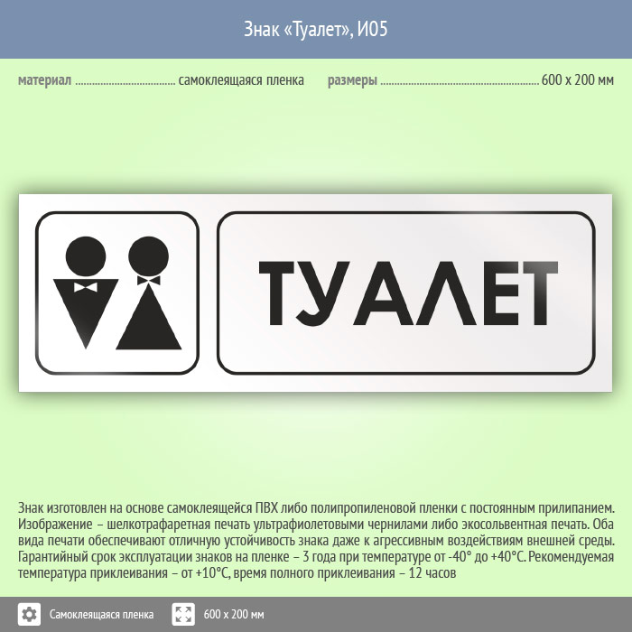 Знак «Туалет», И05 (пленка, 600х200 мм) в Твери купить