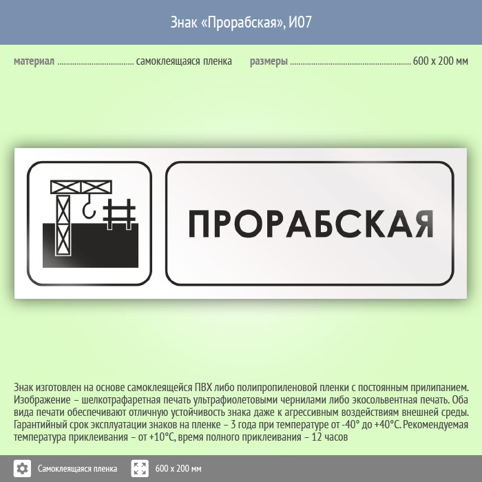 Знак «Прорабская», И07 (пленка, 600х200 мм) в Твери купить