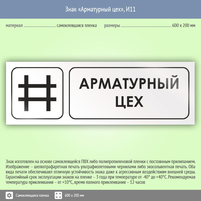 Знак «Арматурный цех», И11 (пленка, 600х200 мм) в Твери купить