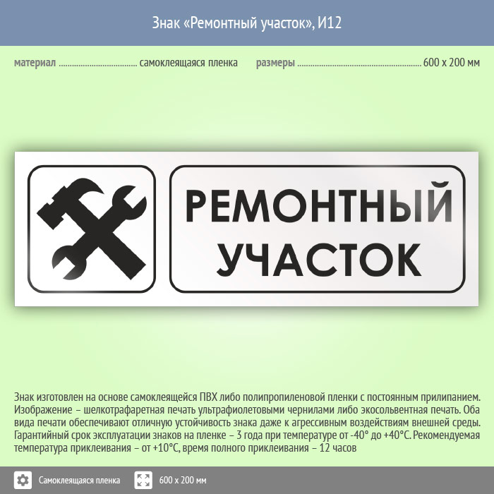 Знак «Ремонтный участок», И12 (пленка, 600х200 мм) в Твери купить
