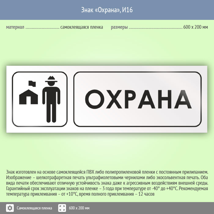 Знак «Охрана», И16 (пленка, 600х200 мм) в Твери купить