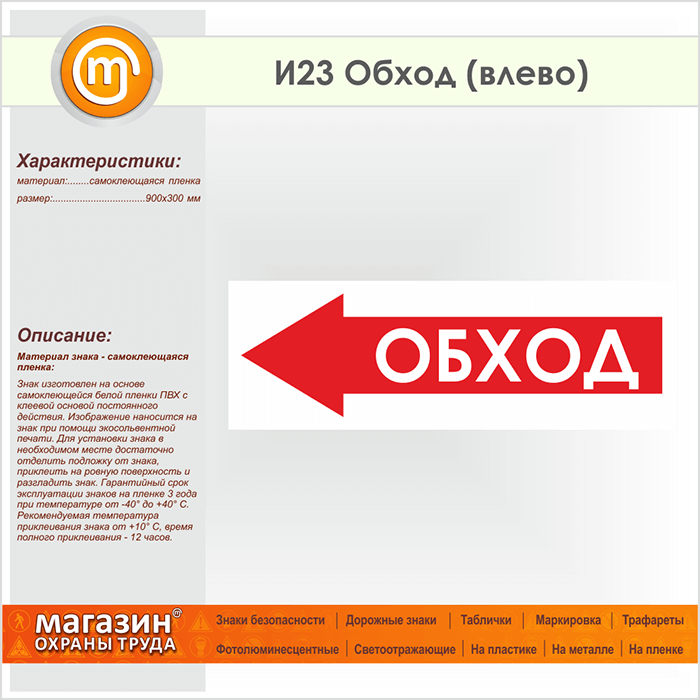 Знак «Обход (влево)», И23 (пленка, 900х300 мм) в Твери купить