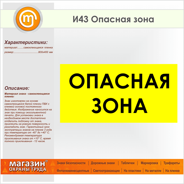 Знак «Опасная зона», И43 (пленка, 800х400 мм) в Твери купить