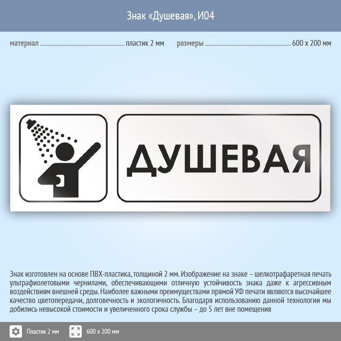 Знак «Душевая», И04 (пластик, 600х200 мм) в Твери купить