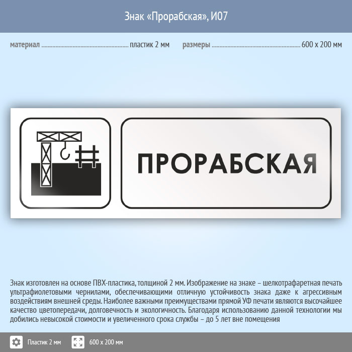 Знак «Прорабская», И07 (пластик, 600х200 мм) в Твери купить