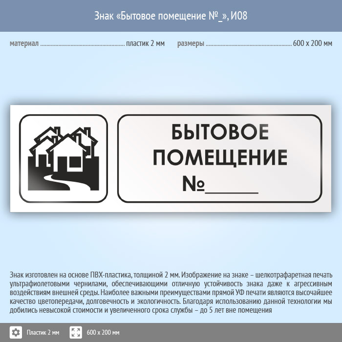 Знак «Бытовое помещение №_», И08 (пластик, 600х200 мм) в Твери купить