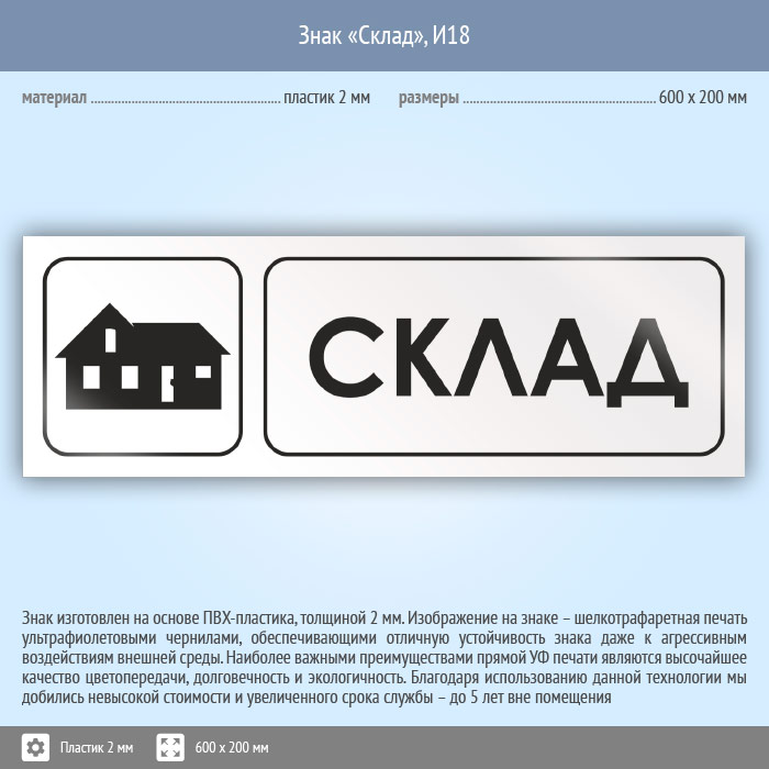 Знак «Склад», И18 (пластик, 600х200 мм) в Твери купить