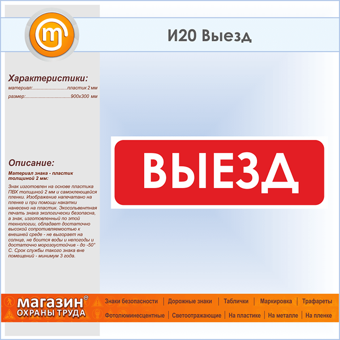 Знак «Выезд», И20 (пластик, 900х300 мм) в Твери купить