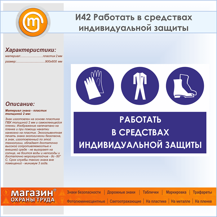 Знак «Работать в средствах индивидуальной защиты», И42 (пластик, 900х600 мм) в Твери купить