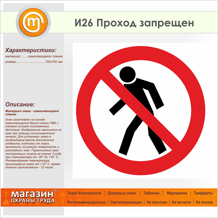 Знак «Проход запрещен», И26 (пленка, 700х700 мм) в Твери купить