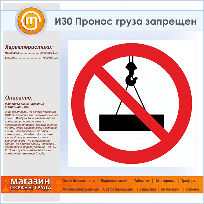 Знак «Пронос груза запрещен», И30 (пластик, 700х700 мм) в Твери купить