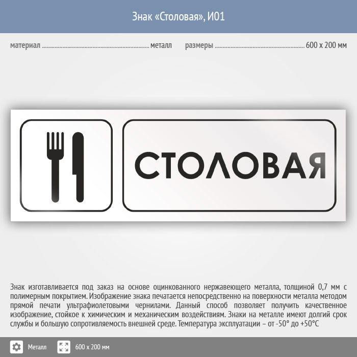 Знак «Столовая», И01 (металл, 600х200 мм) в Твери купить