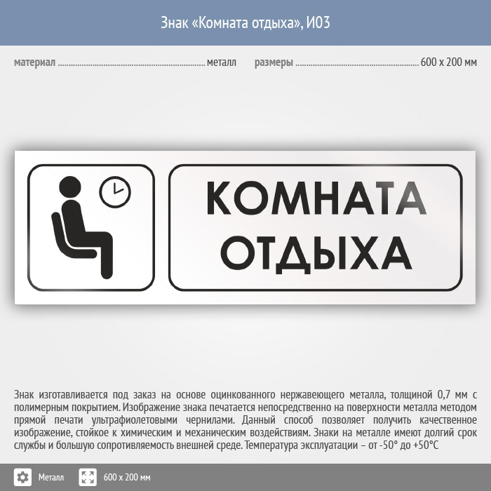Знак «Комната отдыха», И03 (металл, 600х200 мм) в Твери купить