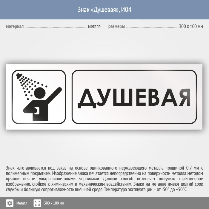 Знак «Душевая», И04 (металл, 300х100 мм) в Твери купить