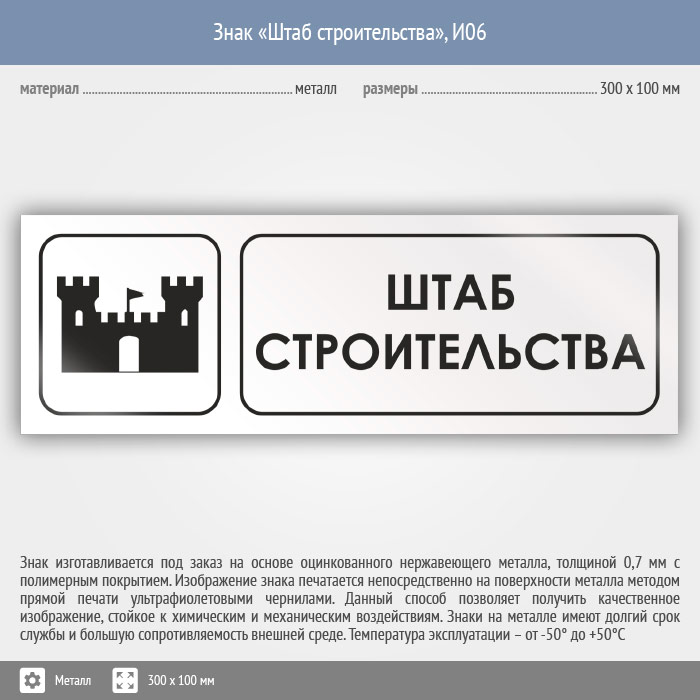 Знак «Штаб строительства», И06 (металл, 300х100 мм) в Твери купить