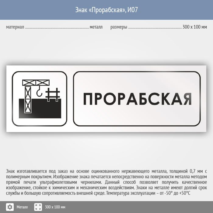 Знак «Прорабская», И07 (металл, 300х100 мм) в Твери купить