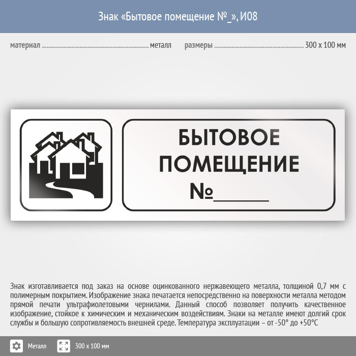 Знак «Бытовое помещение №_», И08 (металл, 300х100 мм) в Твери купить