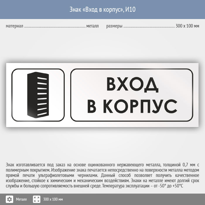 Знак «Вход в корпус», И10 (металл, 300х100 мм) в Твери купить