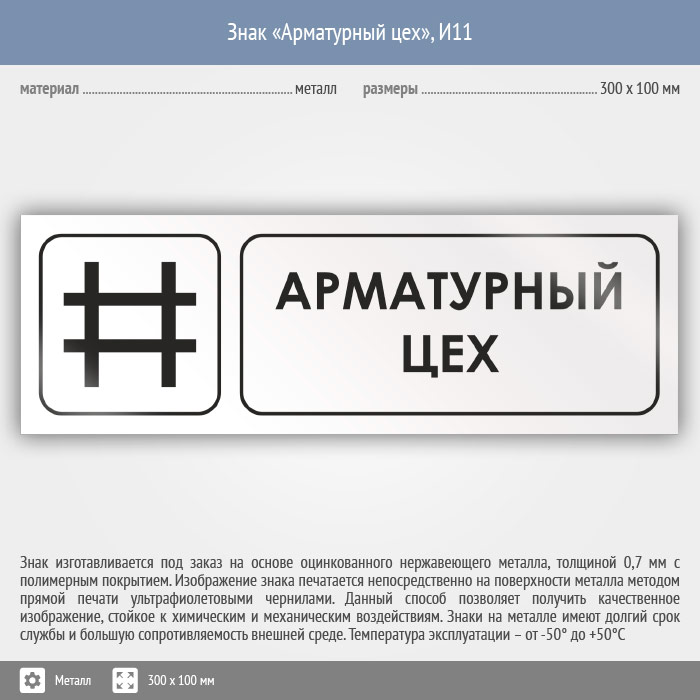 Знак «Арматурный цех», И11 (металл, 300х100 мм) в Твери купить