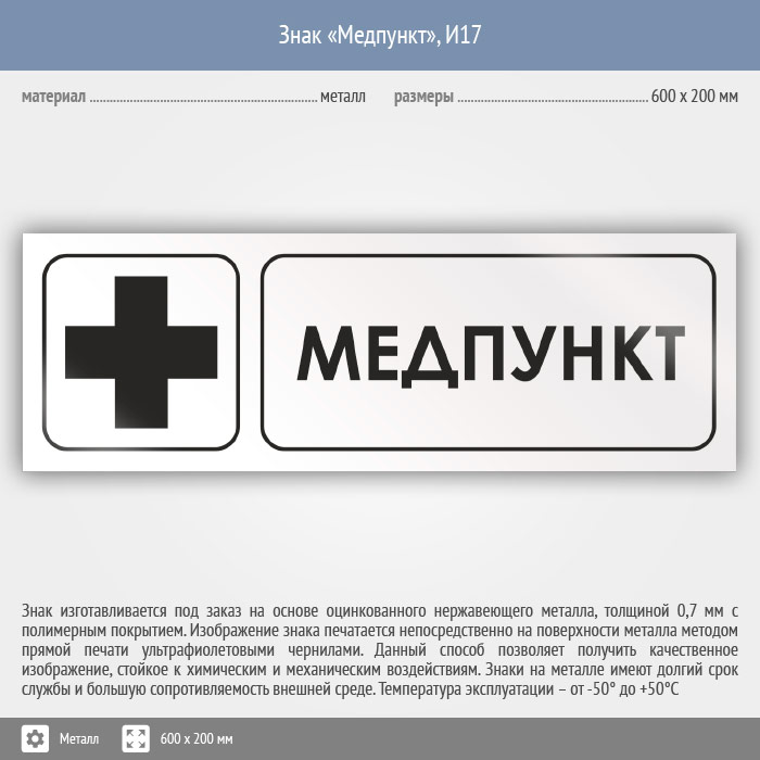 Знак «Медпункт», И17 (металл, 600х200 мм) в Твери купить