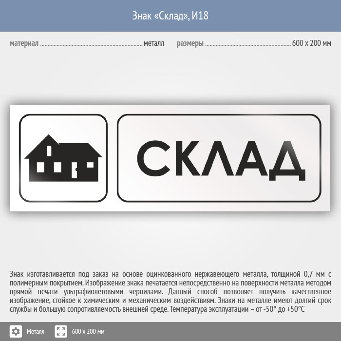 Знак «Склад», И18 (металл, 600х200 мм) в Твери купить