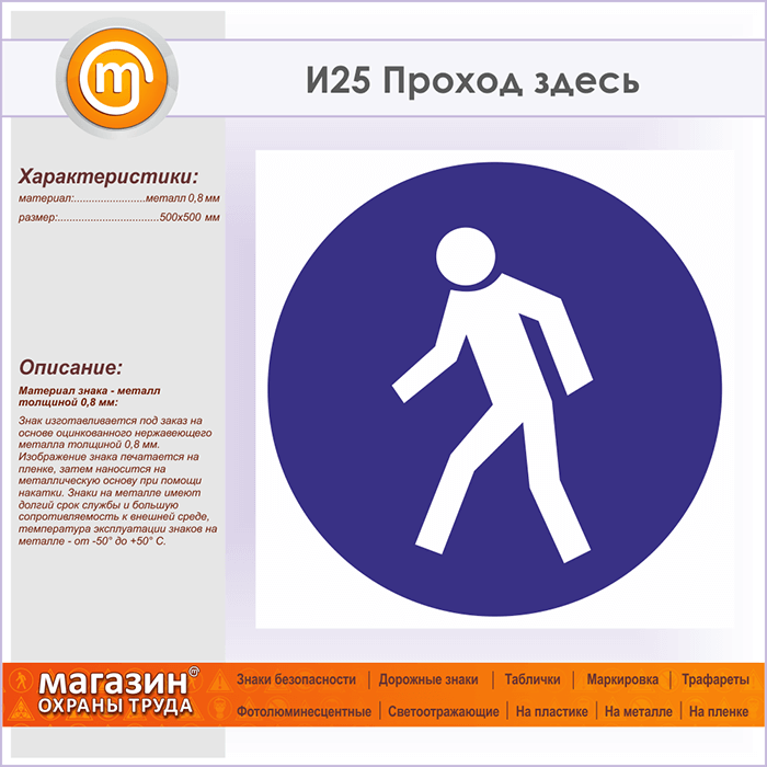 Знак «Проход здесь», И25 (металл, 500х500 мм) в Твери купить