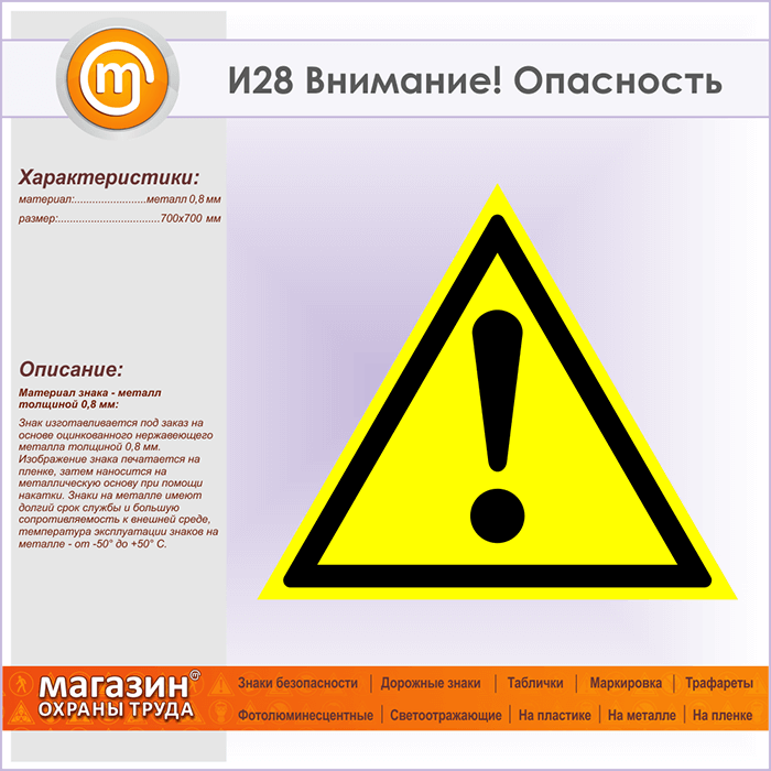 Знак «Внимание! Опасность», И28 (металл, сторона 700 мм) в Твери купить