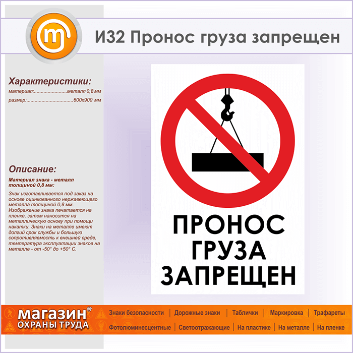 Знак «Пронос груза запрещен», И32 (металл, 600х900 мм) в Твери купить