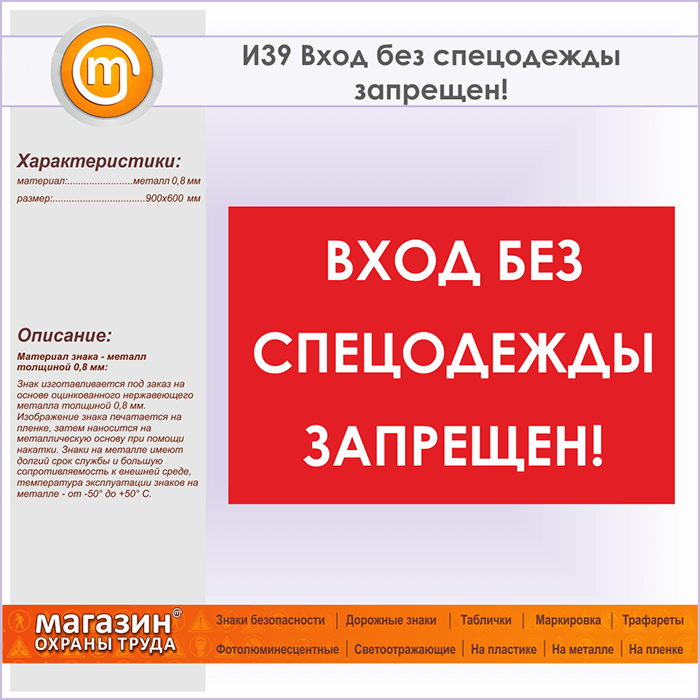 Знак «Вход без спецодежды запрещен!», И39 (металл, 900х600 мм) в Твери купить