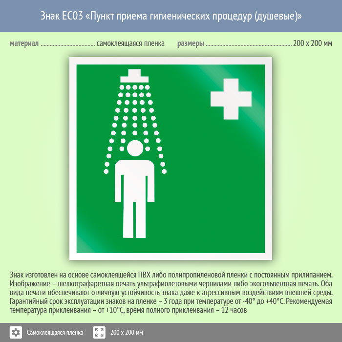 Знак EC03 «Пункт приема гигиенических процедур (душевые)» (пленка, 200х200 мм) в Твери купить