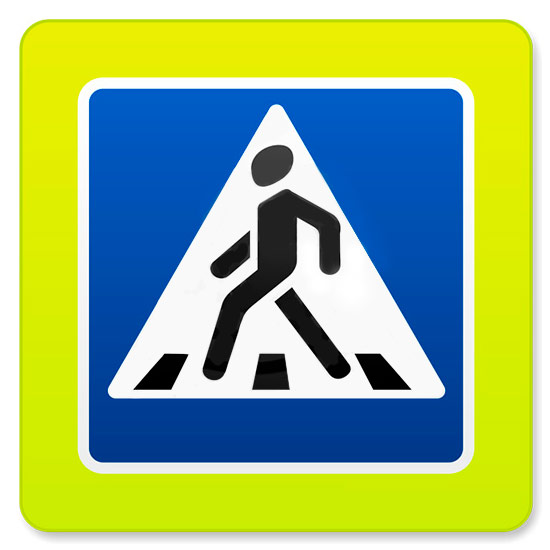 Дорожный знак 5.19.1д «Пешеходный переход» флуоресцентный (металл 0,8 мм, II типоразмер + кант: сторона 900 мм, С/О пленка: тип В алмазная) в Твери купить
