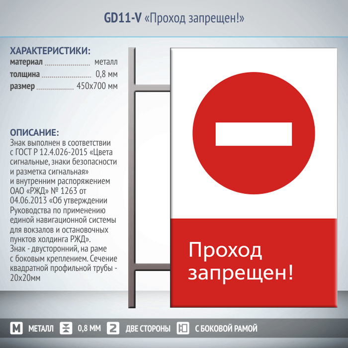 Знак «Проход запрещен!», GD11-V (двусторонний вертикальный, 450х700 мм, металл, на раме с боковым креплением) в Твери купить