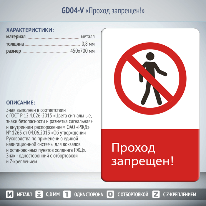 Знак «Проход запрещен!», GD04-V (односторонний вертикальный, 450х700 мм, металл, с отбортовкой и Z-креплением) в Твери купить
