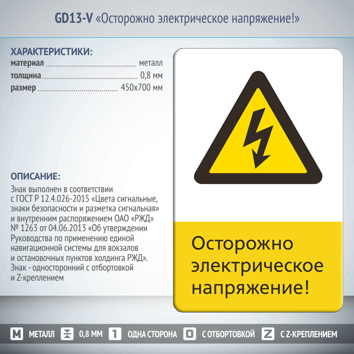 Знак «Осторожно электрическое напряжение!», GD13-V (односторонний вертикальный, 450х700 мм, металл, с отбортовкой и Z-креплением) в Твери купить