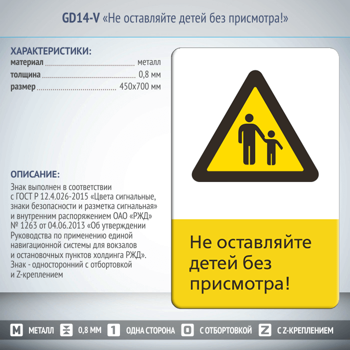 Знак «Не оставляйте детей без присмотра!», GD14-V (односторонний вертикальный, 450х700 мм, металл, с отбортовкой и Z-креплением) в Твери купить