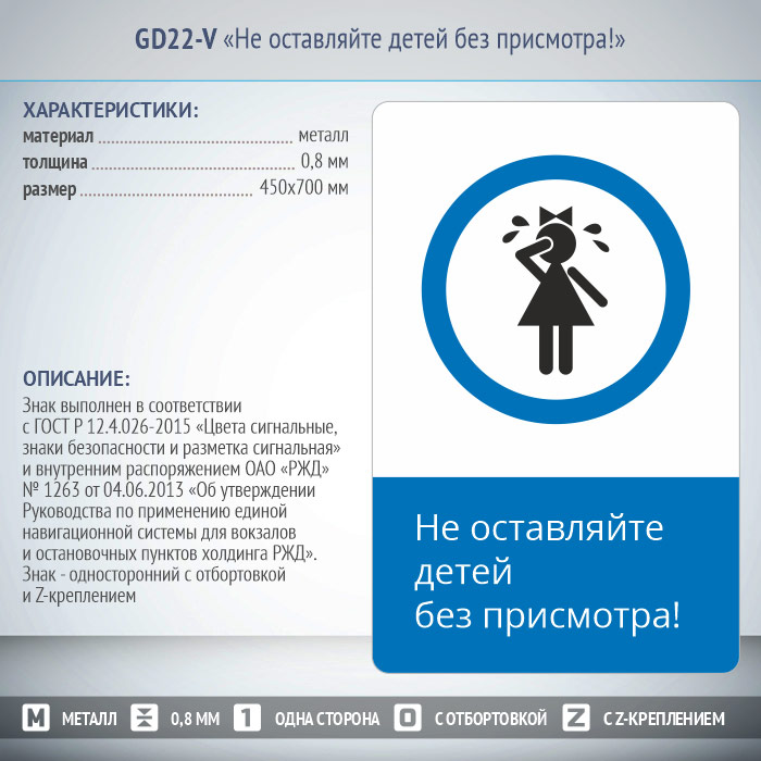 Знак «Не оставляйте детей без присмотра!», GD22-V (односторонний вертикальный, 450х700 мм, металл, с отбортовкой и Z-креплением) в Твери купить