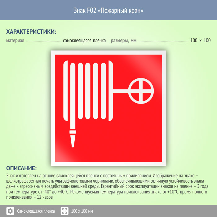 Знак F02 «Пожарный кран» (пленка, 100х100 мм) в Твери купить