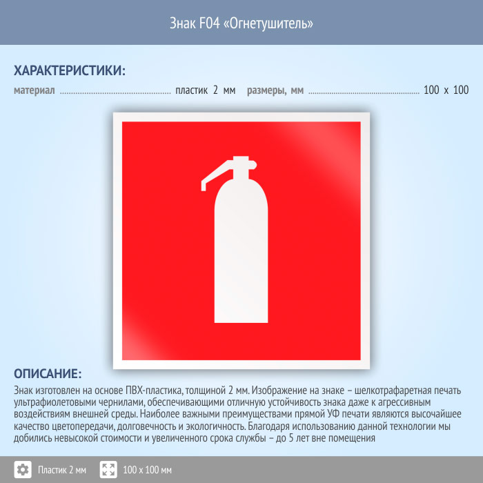 Знак F04 «Огнетушитель» (пластик, 100х100 мм) в Твери купить