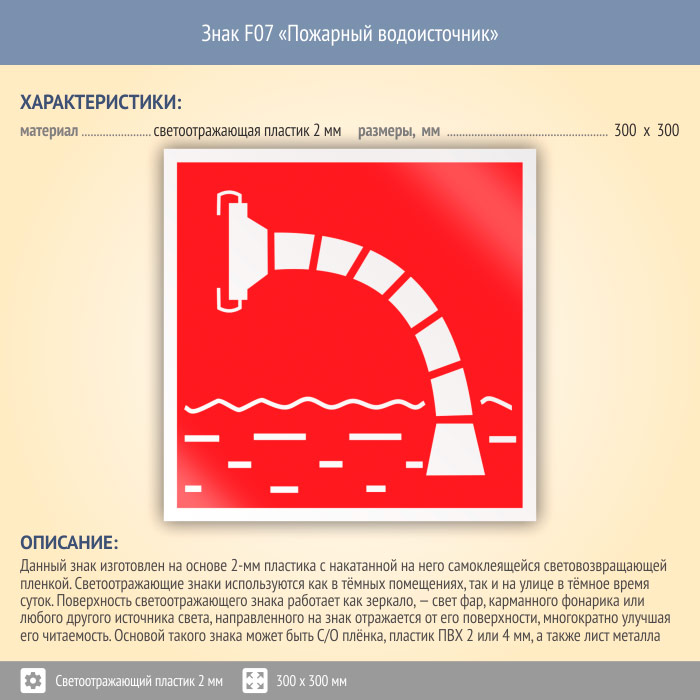Знак F07 «Пожарный водоисточник» (светоотражающий пластик, 300х300 мм) в Твери купить