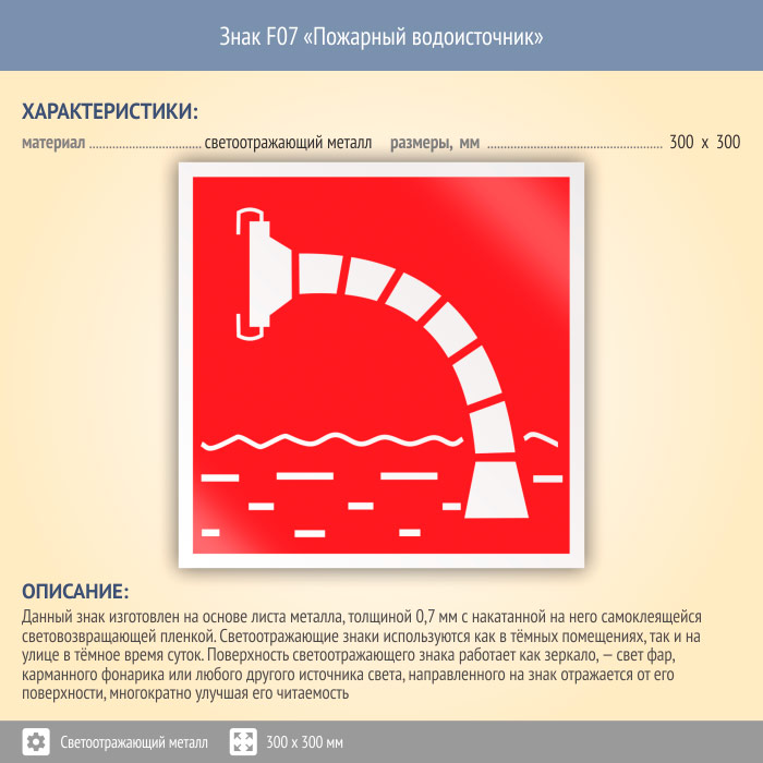 Знак F07 «Пожарный водоисточник» (светоотражающий металл, 300х300 мм) в Твери купить