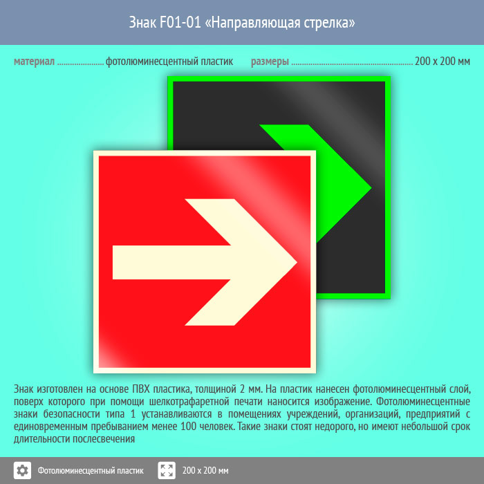 Знак F01-01 «Направляющая стрелка» (фотолюминесцентный пластик, 200х200 мм) в Твери купить