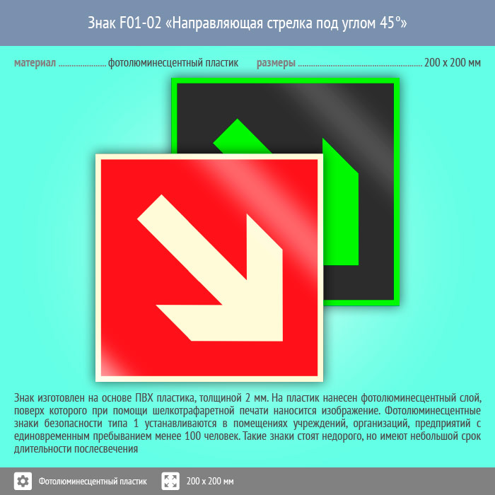 Знак F01-02 «Направляющая стрелка под углом 45°» (фотолюминесцентный пластик, 200х200 мм) в Твери купить
