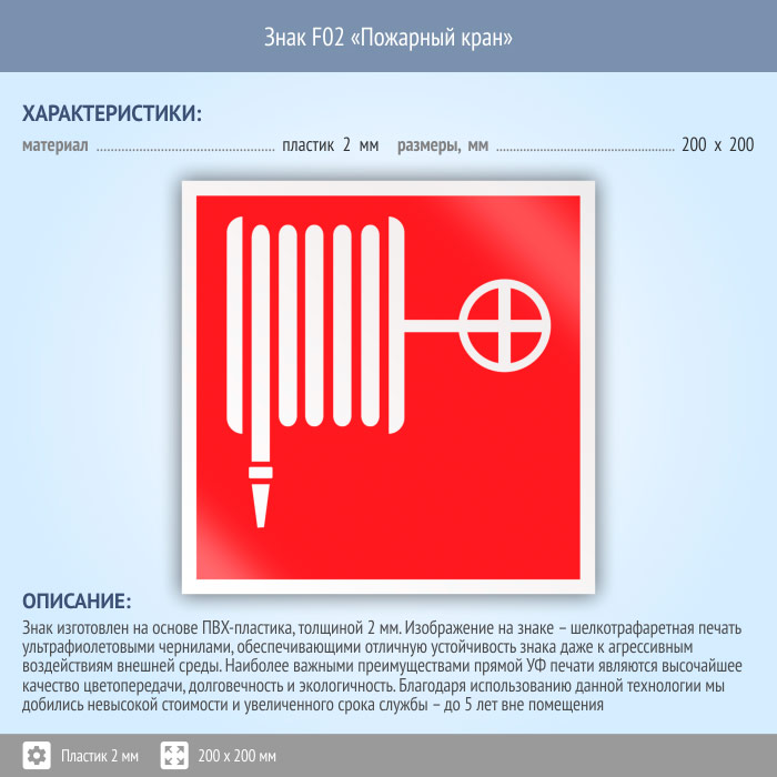 Знак F02 «Пожарный кран» (пластик, 200х200 мм) в Твери купить
