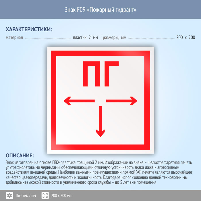 Знак F09 «Пожарный гидрант» (пластик, 200х200 мм) в Твери купить