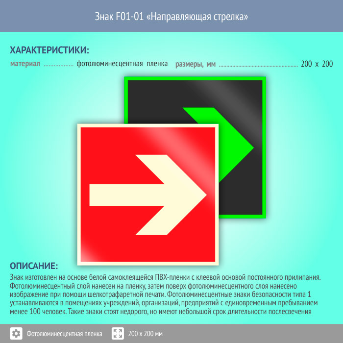 Знак F01-01 «Направляющая стрелка» (фотолюминесцентная пленка, 200х200 мм) в Твери купить