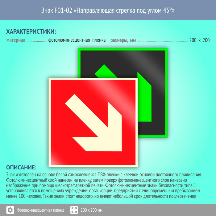 Знак F01-02 «Направляющая стрелка под углом 45°» (фотолюминесцентная пленка, 200х200 мм) в Твери купить