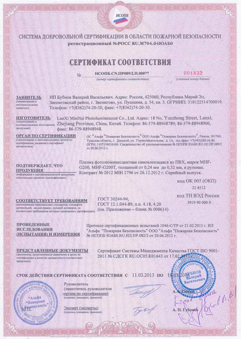 | Материал: | фотолюминесцентная пленка ГОСТ 34428-2018 | |