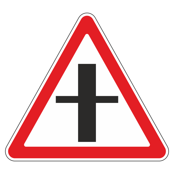 Дорожный знак 2.3.1 «Пересечение со второстепенной дорогой» (металл 0,8 мм, III типоразмер: сторона 1200 мм, С/О пленка: тип В алмазная) в Твери купить