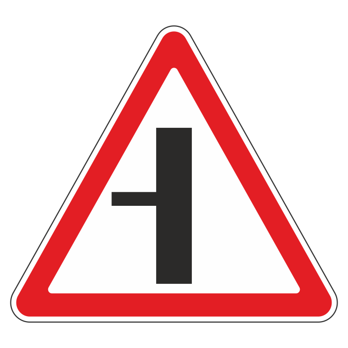 Дорожный знак 2.3.3 «Примыкание второстепенной дороги слева» (металл 0,8 мм, II типоразмер: сторона 900 мм, С/О пленка: тип Б высокоинтенсивная) в Твери купить