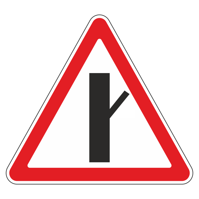 Дорожный знак 2.3.4 «Примыкание второстепенной дороги справа» (металл 0,8 мм, I типоразмер: сторона 700 мм, С/О пленка: тип В алмазная) в Твери купить